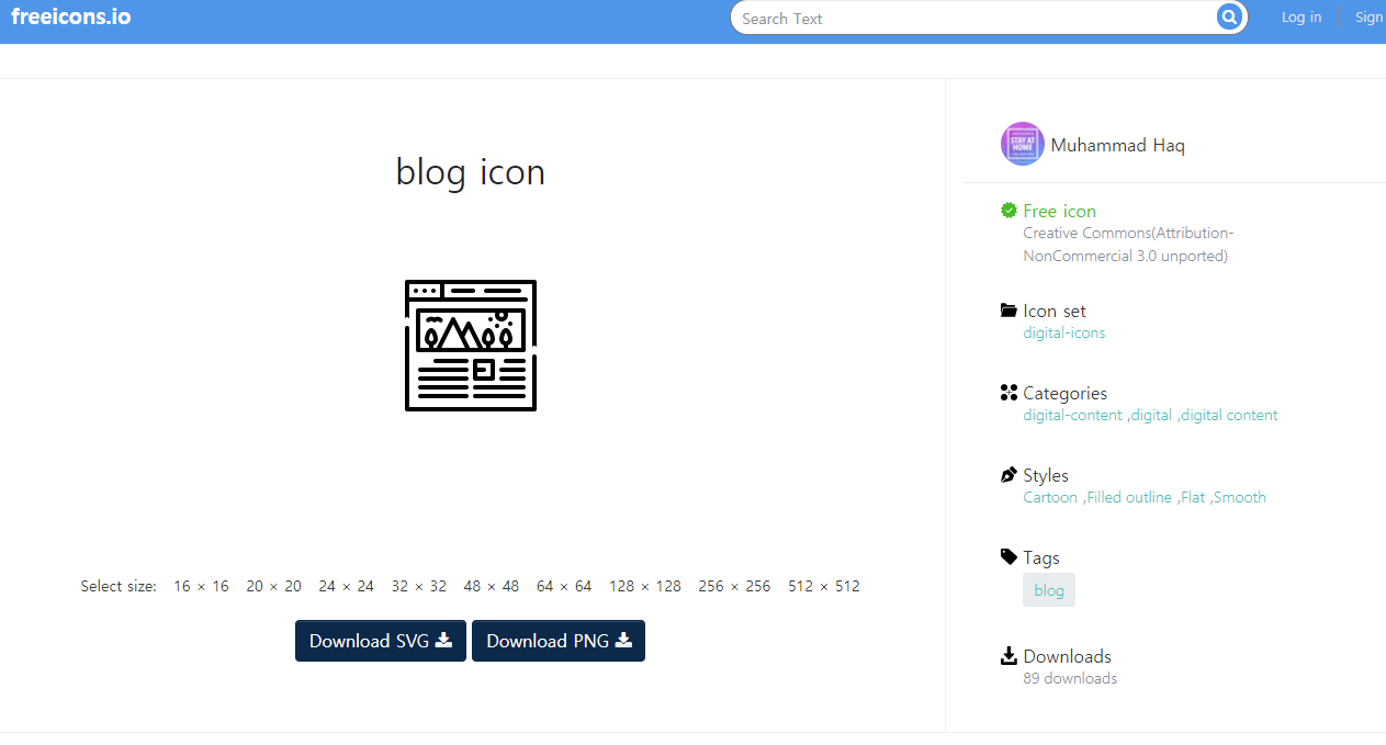 이렇게 받고 싶은 아이콘을 클릭하면 PNG, SVG 둘중 한가지 버젼으로 다운받을 수 있다.